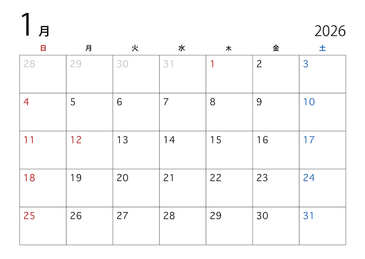 2026年1月のスケジュールのお知らせ